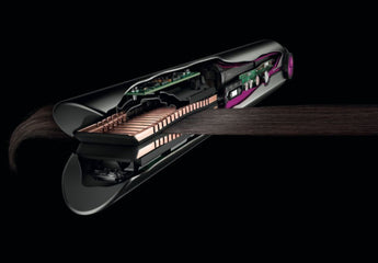 Corrale HS03 / HS07 - for straightening dry hair with precision: the Corrale's defining feature is its manganese copper flexing plates. Unlike conventional flat plates, they flex to shape around sections of hair, gathering it more evenly so the style requires fewer passes over the same section. This reduces the total heat exposure needed to achieve the same result. The result is up to 50% less breakage compared to conventional straighteners at equivalent styles. The cordless battery gives up to 30 minutes of styling time on a full charge, covering most styling sessions. The machine also works corded using the included adaptor. The HS03 and HS07 are the same tool; the HS07 is simply a later production revision with cosmetic and minor refinements. Either delivers the same flexing plate performance.
